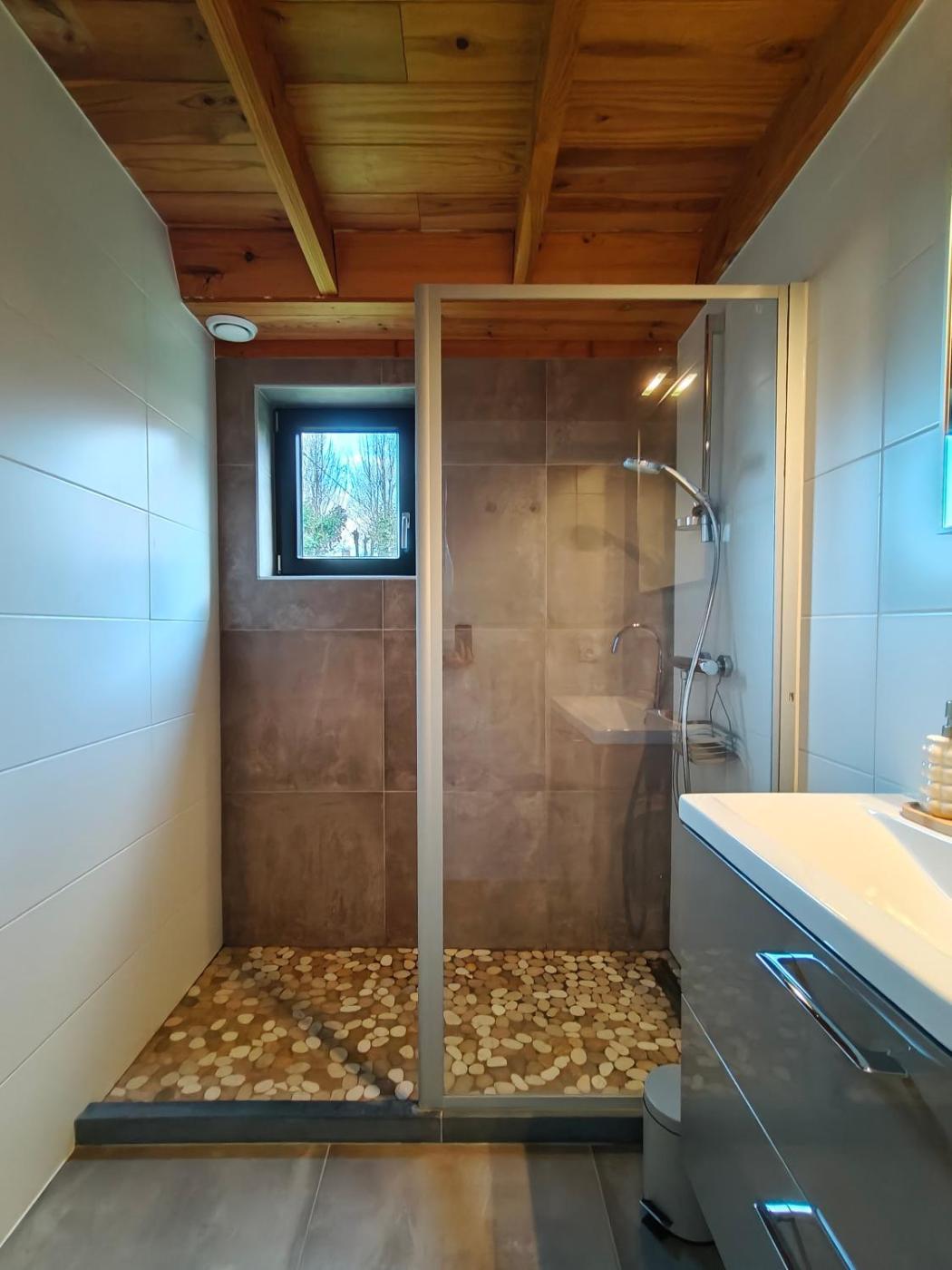 Two-Bedroom House. This spacious holiday home features 1 living room, 2 separate bedrooms and 1 bathroom with a walk-in shower and free toiletries. Guests can make meals in the kitchen that has a stovetop, a refrigerator, a dishwasher and kitchenware. Boasting a terrace with garden views, this holiday home also features a coffee machine and a flat-screen TV. The unit has 3 beds.